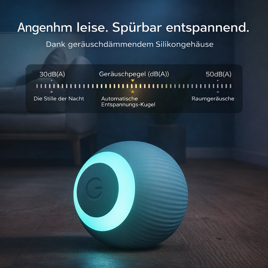 PlayBall ist für den Alltag gemacht und bewegt sich relativ leise – besonders auf Teppich. Auf harten Böden kann er etwas hörbarer sein.
