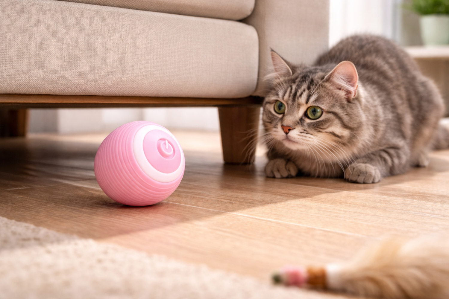 Der PlayBall sorgt mit seiner unregelmäßigen, selbstständigen Bewegung für aktives Spielen und hält Katzen länger beschäftigt – ganz ohne ständiges Eingreifen.